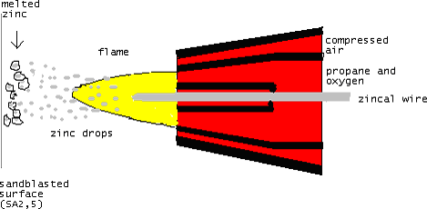 on the surface of the material. The zinc wire is feeded into an oxygen-fuel